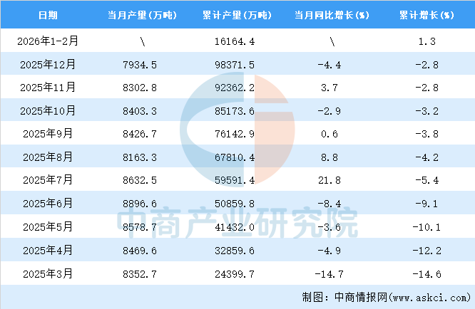 2026年1-2月全國鐵礦石產(chǎn)量增長情況
