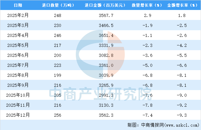 從金額方面來看,數(shù)據(jù)顯示,2025年1-12月我國(guó)初級(jí)形狀的塑料累計(jì)進(jìn)口金額39724.5百萬美元,同比下降9.3%。